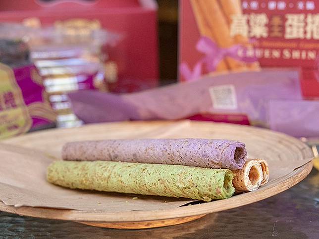走在老街上,遠遠的可以聞到濃濃的蛋香與麥香,原來是隱藏在巷弄中的「淳新商號」手工蛋捲,蛋捲現做現賣,氣味香氣撲鼻,而且店內也販售各個種類的金門特產品。摻有高粱香氣的高粱蛋捲是店裡的招牌,店面門口新鮮現做,口味眾多,有抹茶、草莓、芋頭、竹炭、原味…等,每一種都有獨特風味,蛋捲吃起來酥脆又不會讓你口乾舌燥,香氣程度真的完全不輸大牌蛋捲廠商。每一捲蛋捲都是手工現做,一捲一捲的從麵粉糊到配料都是現場配置而成,透過阿婆高超的技巧,耗時、純手工的用心吃的出來,是原汁原味的天然味道。