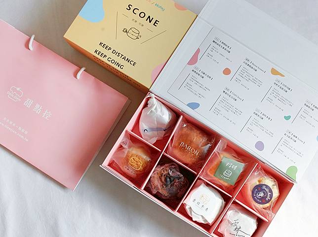 這次跨界攜手甜點電商平台「甜點控」,集結全台8家人氣司康店推出「思康.司康禮盒」,其中有4家來自台北,包括「悄悄好食」(看地圖)、「英國奶奶」(看地圖)、「司康小売所」(看地圖)、「壹玖木巷」(看地圖),南部名店則有嘉義「Baron Scones」(看地圖)、台南「日浮司康」(看地圖)、高雄「CIAO Jessy」(看地圖),以及來自花蓮的「雨林 Scone」(看地圖),口味超澎湃,一次滿足司康控的心!
