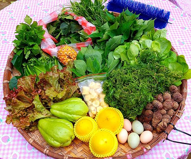 ▲內容物:友善耕作葉菜,友善耕作根莖瓜果,自產農產加工品(份量遵循蔬果箱規格而定)(圖/奧丁丁市集)