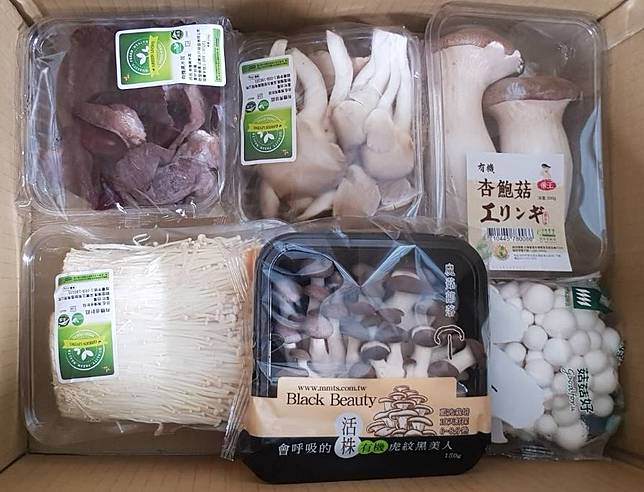 菇類屬於高纖維,低含量的食物,其蛋白質高於一般蔬菜,且含有豐富的胺基酸,多種體等營養成分,既煎,烤,煮,炒都很美味,也非常容易料理。此鮮菇箱內含有6種菇類,可放入養生百菇湯,涼拌鮮菇,鮮炒百菇等等,餐桌上更增添美味。