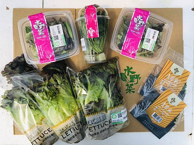 ▲內容物:貝比生菜* 2,裂葉芝麻葉* 1,青紫蘇* 2,歐式萵苣* 3(圖/奧丁丁市集)
