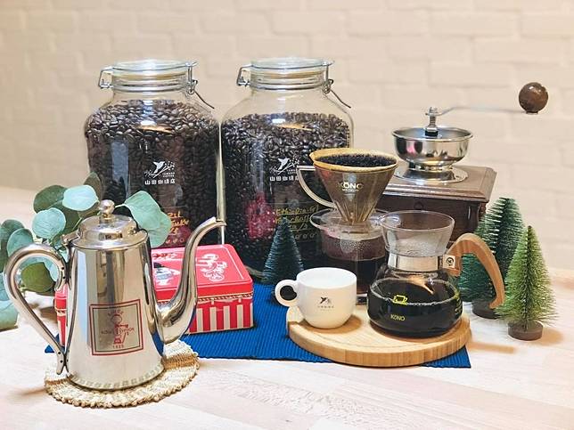 而「KŌNO」(河野)其實是日本創立近百年的咖啡器具品牌,山田珈琲店是該品牌的在台指定販售商。其濾杯的設計適合搭配KŌNO獨家的手沖法, 能夠充分帶出咖啡豆風味的豐富層次。店內就有多款以KŌNO特製烘豆機烘焙的精品咖啡豆、KŌNO的濾紙、濾杯、賽風壺等器具,把技術學起來,在家就能體驗手沖的操作趣味與美味。