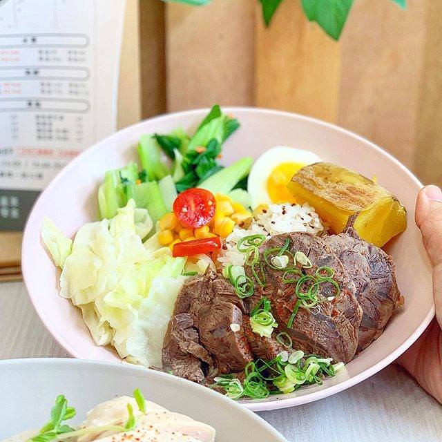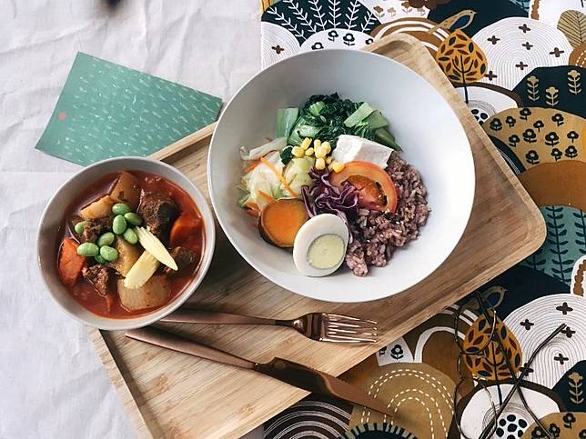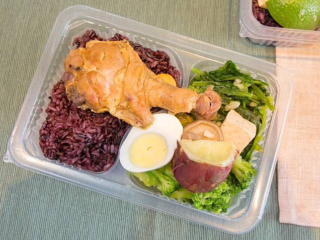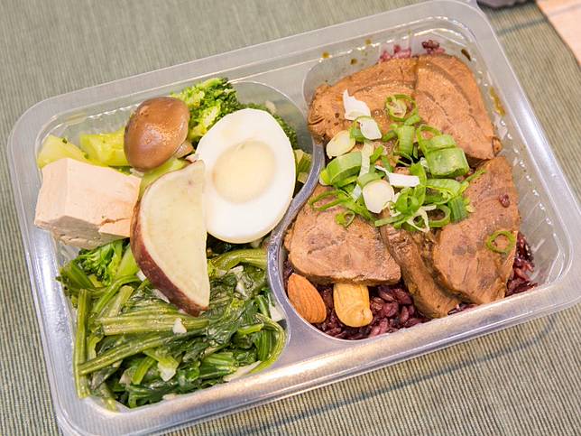 裏享餐盒的米飯採用的是白米、大麥仁、燕麥和料理界紅寶石之稱的紅藜麥,口感Q彈,帶有甜度的尾韻,內含主菜、2種蔬菜、地瓜,特別的是會加入番茄和玉米增加香氣和甜味,配色上十分鮮豔可口,主菜因為經過事先滷過和香料調味,味道也非常出色,每一份餐點都能吃得健康又美味。
