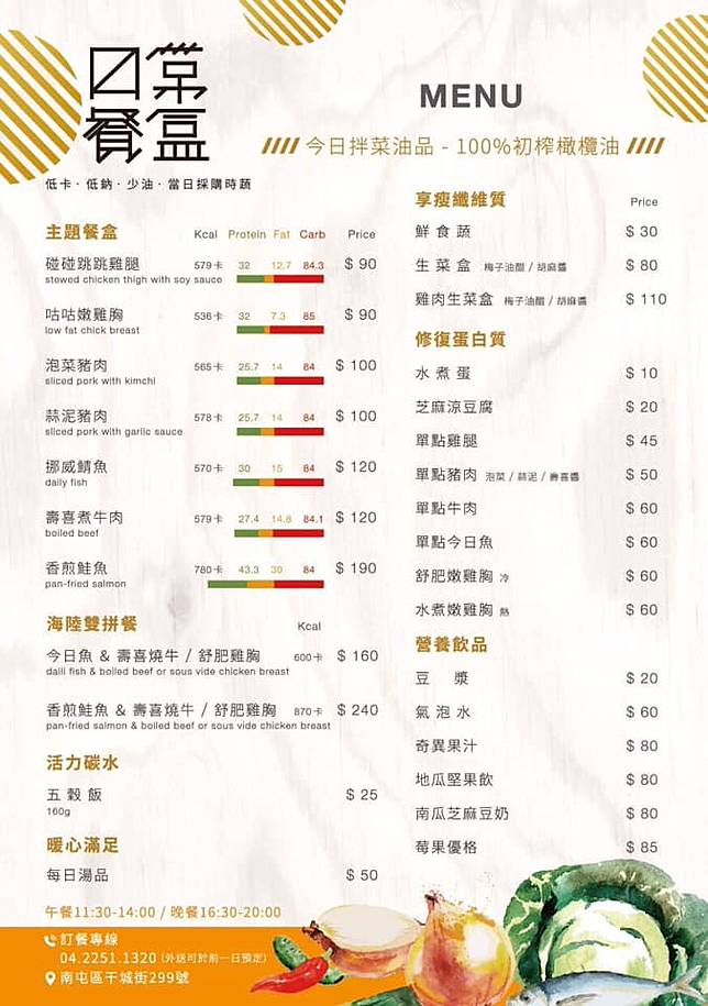 日常餐盒以豐富的蔬菜和視覺色彩出名,在單一餐盒內可以吃到10種以上的食材,不僅在視覺上可以刺激不少食慾,還能讓你擁有一次享用各種食材的樂趣,另外在餐盒內還會放入一些生菜,吃完熟食後還可以來點生菜清爽一下,滿足味蕾。
