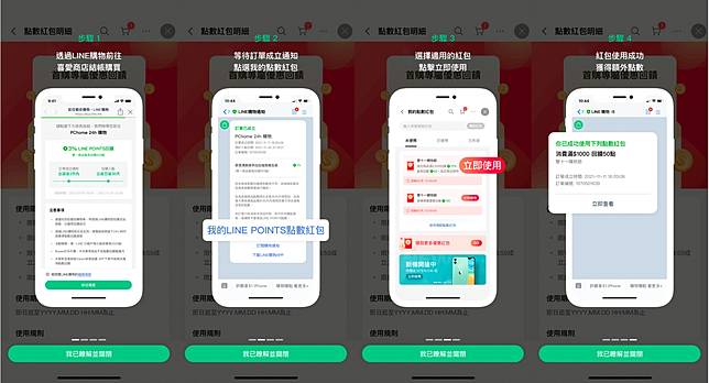 成功領取紅包後,您需透過LINE購物前往合作商家下單,且將紅包成功使用於訂單上,方可符合點數紅包點數回饋資格。
