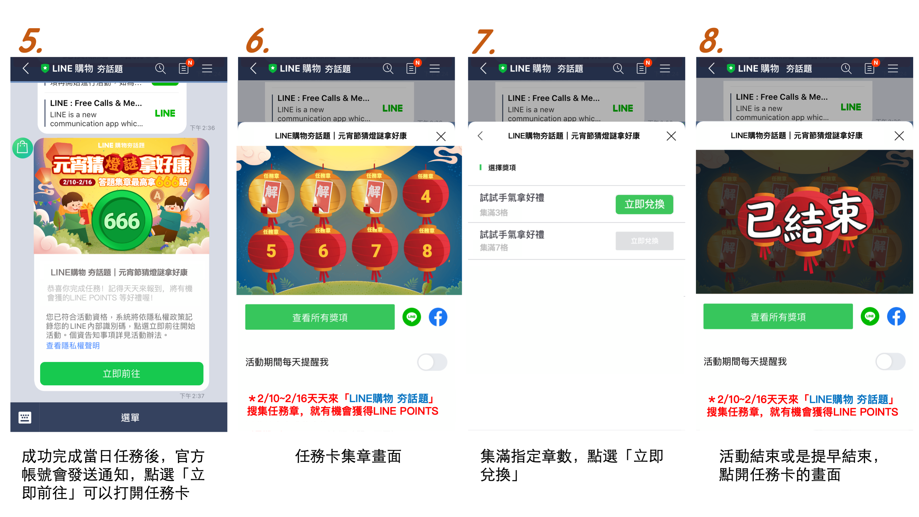 3. 獎勵全數兌換完畢後,活動即會提前結束,無法再集章或領取獎項,隔日將公告於活動辦法及推播於「LINE購物 夯話題」官方帳號。