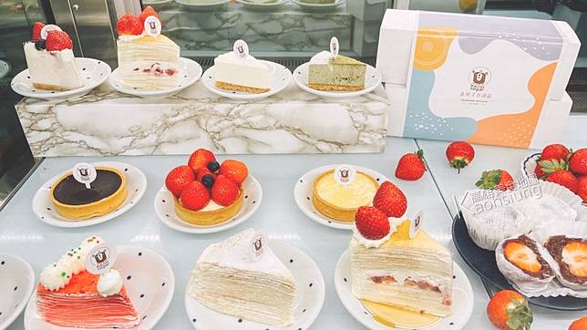 蛋糕種類非常多樣,從千層蛋糕、乳酪蛋糕、塔派到草莓大福都有,每天隨機出爐,價位從$85-99/顆都有,甚至還可以選八片蛋糕,合成一顆獨一無二的八寸蛋糕呢!切片蛋糕就可以搖身變成可以滿足所有口味願望的生日蛋糕啦~