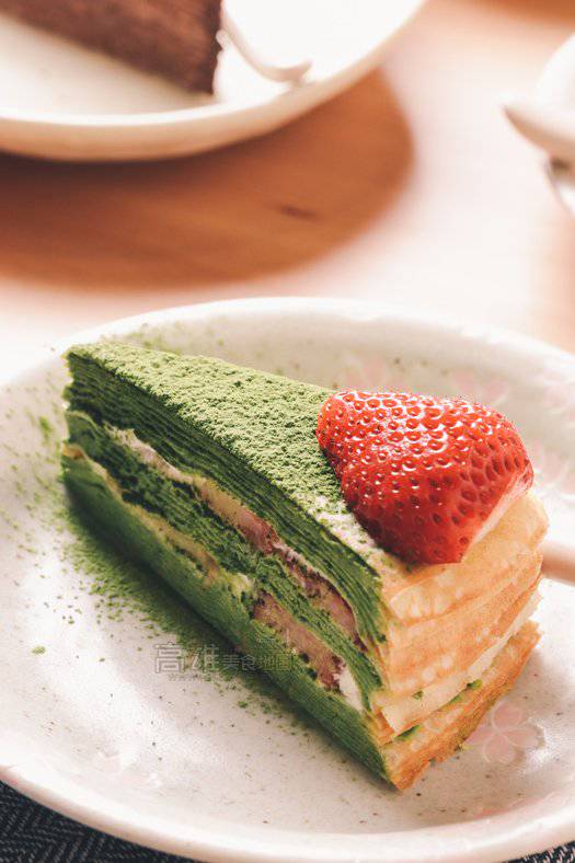 先不說上面那顆大草莓,手工製作的千層蛋糕多少看得出不一致的厚度。奇妙的是,一叉子切下時的那種柔順感,一層層的那種觸動感從叉子細微微的傳導到手指的末梢,吃到嘴裡時,那蛋皮更是巧妙地與抹在中間的奶油完美融合,幾乎感覺不到蛋皮的存在,有種似有若無的口感。