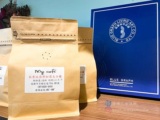 每包咖啡豆上都有註明咖啡豆產地、後處理方式、烘焙度、烘焙時間、地址、建議的手沖溫度等。