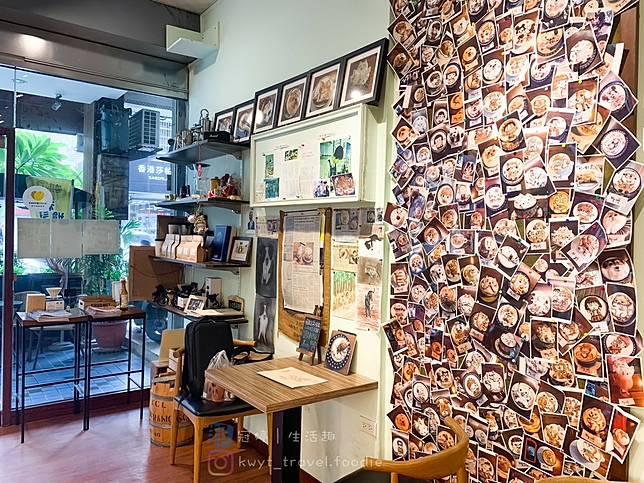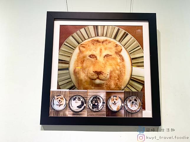 My cofi有接近一半的牆面上張貼著闆闆從業以來陸續紀錄的3D立體拉花作品,給予走進My cofi的朋友分欣賞一番,看起來十分壯觀。
