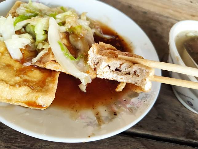 這是一間「巷仔內」的臭豆腐店,不起眼的小店就藏在一條不起眼的小巷。唯一會引人注意的是店外排隊的人龍,和店內飄出的臭豆腐香。