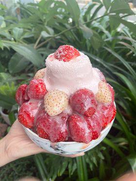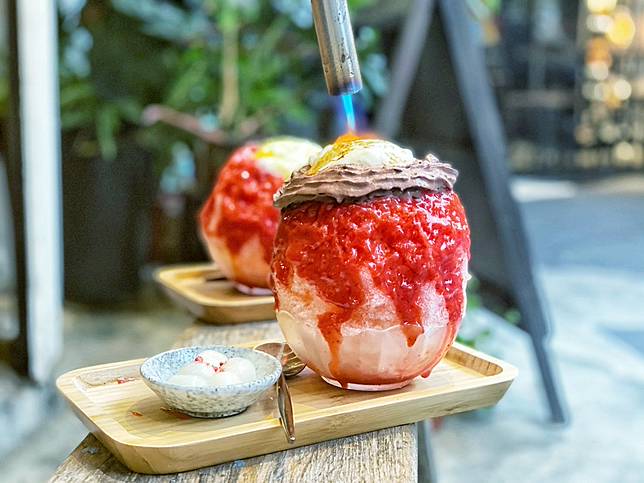 台北東門市場必吃日式刨冰「金雞母」(看地圖),以台灣食材出發並結合技法,依季節推出不同口味,詮釋不一樣的創意刨冰及甜品,其中最受喜愛的是「燒冰」系列,冰品上桌時會用噴槍高溫燒炙特製布蕾醬,烤布蕾入口溫熱與冰品沁涼形成強烈對比,還帶有濃濃的焦糖香氣。季節限定的「燒冰草莓」,現場炙燒烤布蕾,口感滑嫩濃郁帶有焦香味,搭配手工熬煮草莓與覆盆子果醬,酸甜不膩口,附上白玉增加口感,是金雞母冬天的經典口味。而「炙燒芝士巧克力草莓」,不同於燒冰草莓的濃郁烤布蕾,以清爽炙燒芝士搭配濃郁法芙娜巧克力,最後以酸甜草莓平衡味蕾,滿足冬天想吃冰的滿滿幸福感。