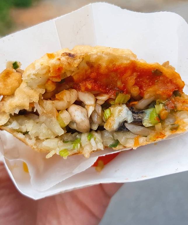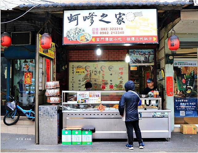 金門小吃為數眾多,孝節牌坊這條莒光路更是榜上有名,在這條路上一眼望過去,就能看見這次要介紹的蚵嗲之家。店內所有品項都是現點現炸,相當受歡迎,往往開賣的時候就開始排隊了,所以稍稍的等待是必須的,在所有品項中人氣最高的自然是招牌蚵嗲了,外皮酥脆不說,內餡更是完美詮釋了「爆漿」的概念,裡面的高麗菜和蔥蘊含水分,一口咬下就會有湯汁爆出,蚵仔更是埋伏在其中,一不注意就在嘴裡炸開,滿滿海味瞬間充斥嘴裡,這就是蚵嗲最吸引人的地方。