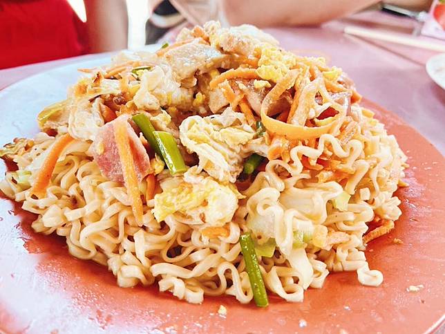 而炒泡麵又是另一種回憶了,所謂的炒泡麵是當時阿兵哥來麵攤吃麵時,一般的麵條用完了,只好拿泡麵充數,沒想到泡麵加了一些青菜配料之後,變得又香又好吃,這種做法也一傳十、十傳百,慢慢的,加了大量配料的炒泡麵成為了當地駐軍的最愛,現在則成為觀光客的最愛,來金門必吃的名單中,不知不覺的就多了炒泡麵了。