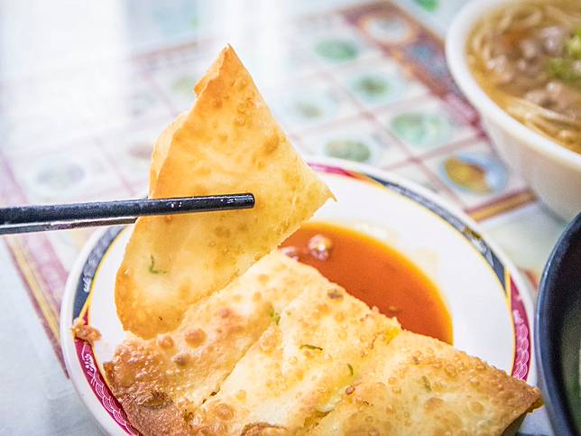 雖然名為小吃店,標記的食物可一點都不簡單,首先是客人心目中的第一名,超美味的手工蛋餅,餅皮算是半煎半炸,香酥口感真的和炸蔥油餅相當類似,中間包覆的煎蛋非常的厚實,比一般的蛋餅更有口感,實現了所有餅類的終極目標,外酥內軟。蛋的香氣配著卡滋卡滋的餅皮,再加上甜甜的醬料,一份絕對不夠,至少也是要兩到三份才過癮。