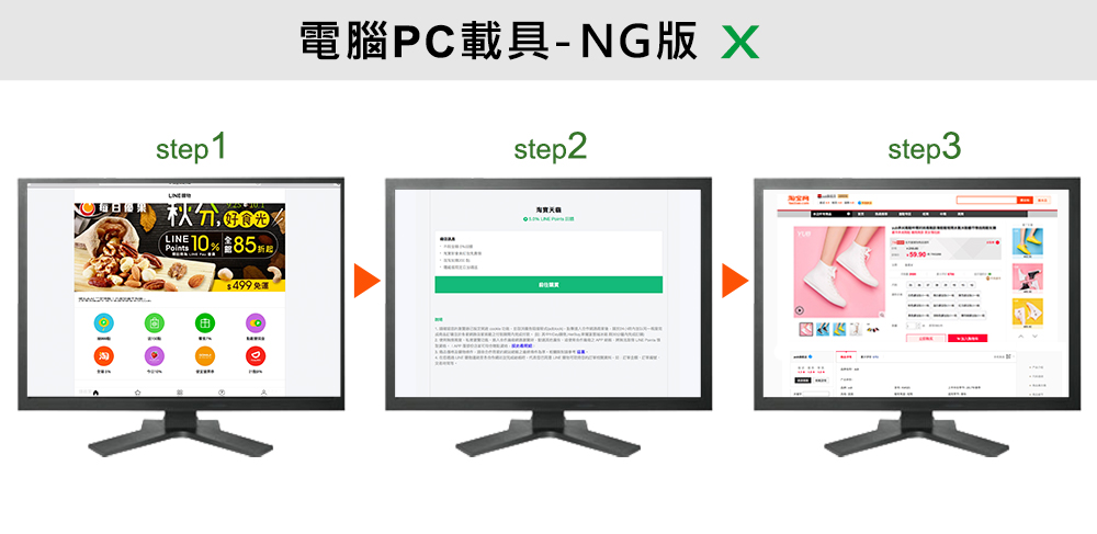 ・使用PC網頁,從『LINE購物』到淘寶天貓網域,完成結帳者;