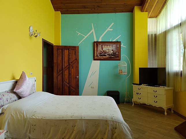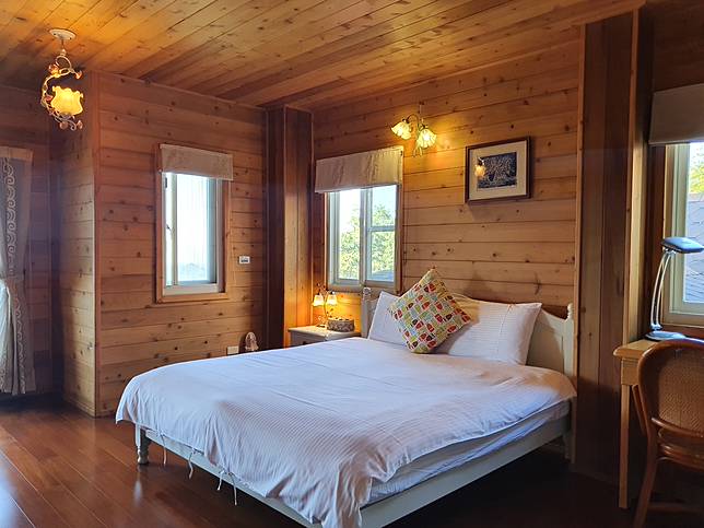 民宿主人原是小學校長,退休後打造自己喜愛的木屋形式,整棟建築採用香杉和柚木地板,搭配歐美鄉村風格的家具燈飾,每間房間都呈現不同風格,散發出淡淡的木頭香。可包棟,5房可住14人;可烤肉,須預約。