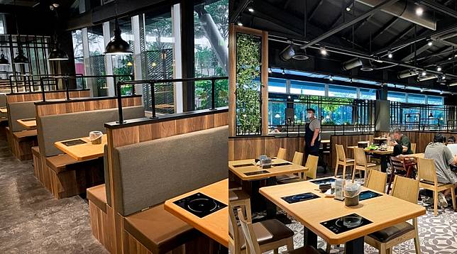 說樁涮是高雄最美涮涮鍋餐廳實在不浮誇,戶外超大綠化庭園、樹林包圍,室內挑高天花板霸氣舒暢,大量木作搭配綠樹造景,給人一種森林療癒系的感覺。