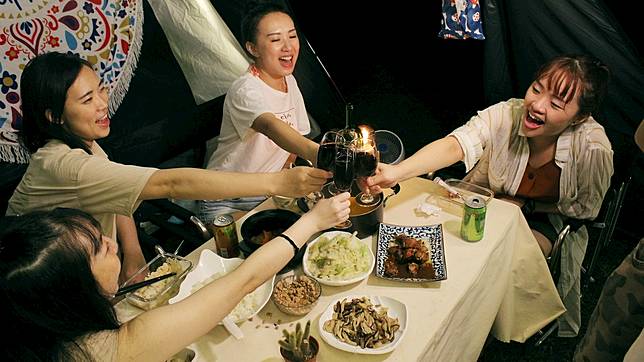 懶得準備食材卻又想吃大餐的朋友們,可以選擇營區提供的料理包,僅需隔水加熱且菜色多元,盛放到盤子上時,瞬間以為自己在哪家山間餐廳用餐呢!再配上自備的飲品,遠離日常的喧囂,和朋友們迎接輕鬆愉快的夜晚~