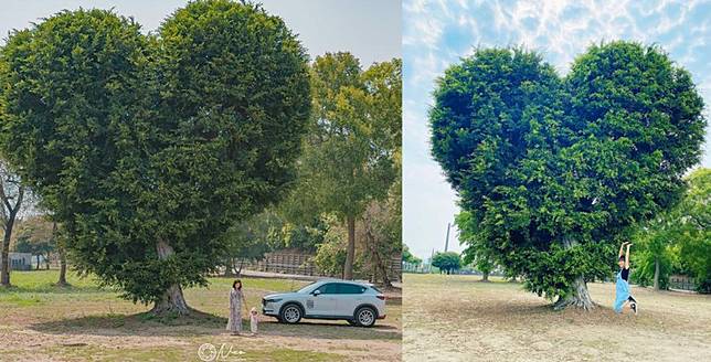 午後或是黃昏時分前來愛心樹,在陽光的照射下,更顯得耀眼又迷人,讓人不禁想要前來大葉大學的愛心樹浪漫一下,拍完愛心樹還可順遊附近的景點,其中大村的雙心池塘也是熱門的打卡景點,距離大葉大學僅約5分鐘車程,十分適合利用一個下午前來,來場浪漫半日遊把滿滿愛心拍進回憶裡。