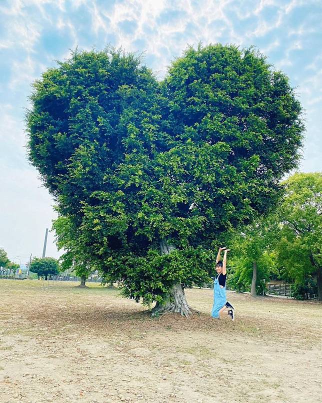 位於彰化大村鄉的大葉大學,有一處隱藏版的網美景點,大葉大學校門口外西側停車場的巨大愛心樹模樣超可愛!也讓人直接聯想到台中萬坪公園中的「米奇樹」(看地圖),而這顆心型樹是由榕樹及破布子樹形成的特殊景象,也象徵著永結同心的美妙意涵,因為十分的高大連愛車都可以一同入鏡,不管是人或車在樹下就顯得超級嬌小!