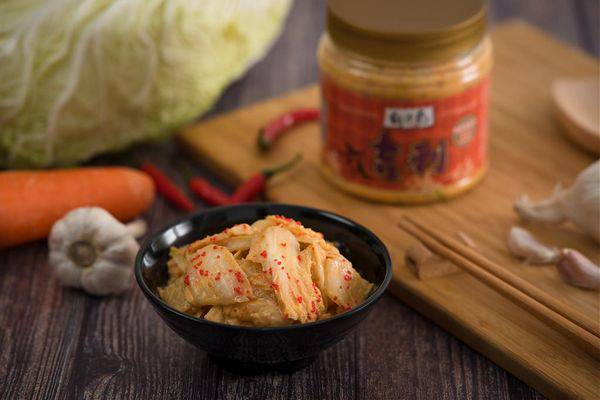 該店熱門品項有金玉泡菜(黃金海帶芽)、吉利泡菜(黃金飛魚子泡菜)、富貴泡菜(蒜味韓式泡菜)、好彩頭泡菜(客家蘿蔔泡菜)四個口味,特殊的獨家醬料讓你秒殺碗中的白飯。