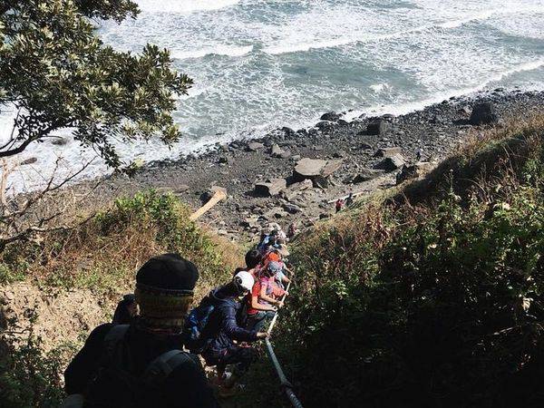 古道中途也需要攀爬陡坡,現今經過修整,已經設有輔助繩與簡易的棧道,從陡坡往上走,就會進入海岸原始森林