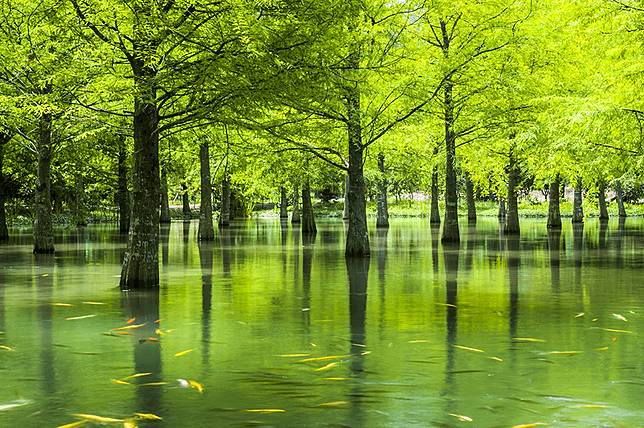 位於壽豐鄉的鈺展苗圃以四季分明的落羽松美景成為打卡祕境。這兒的落羽松特色是水上森林,隨著四季變換,落羽松漸層繽紛的色彩倒映在水面上,美得有如一幅畫。春夏秋冬,各有萬種風情。