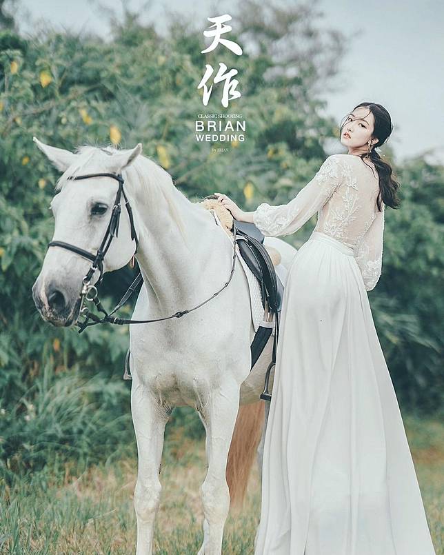另外,這裡也有提供新人婚紗服務,可以選擇馬匹顏色,不論是白馬、黑馬,還是棕色馬,完全依照你的構圖、服裝來搭配,場地也可以選擇沙灘、草原或是馬術場,就算是騎馬拍婚紗也能同時有浪漫風格和率性風。