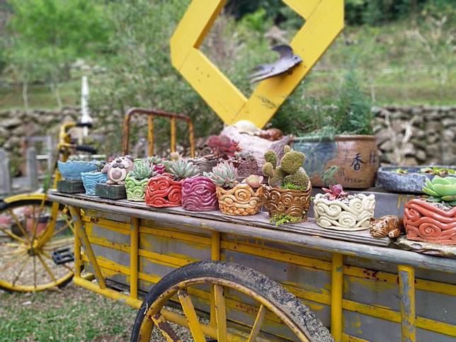 ▲陶器與植物融入在大自然中,和諧而不刺眼(圖/燕子陶 陶藝咖啡民宿)