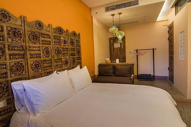 ▲復古雕花大門直接成了床頭板的裝飾(圖/賴老師的家)