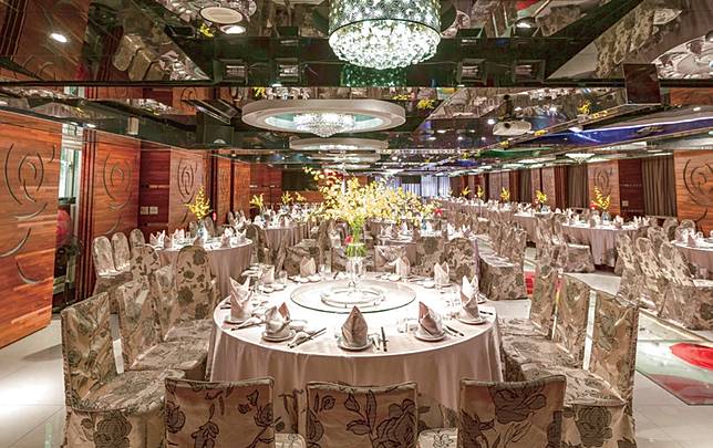 以湘菜聞名的婚宴會館,場中吊著奢華、氣派的高級水晶燈看起來高雅又華麗!