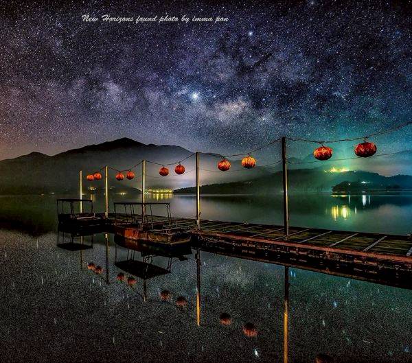 木製的步道掛上橘紅霓光的燈籠,湖面上有兩條簡陋小船,散發出古色古香的文藝氣息,被譽為隱身在涵碧步道中的絕美秘境,無論是清晨蒙著神秘面紗;還是像一幅幽靜中國畫;抑或是觀星賞銀河的蔣公碼頭,三種面貌我都愛。