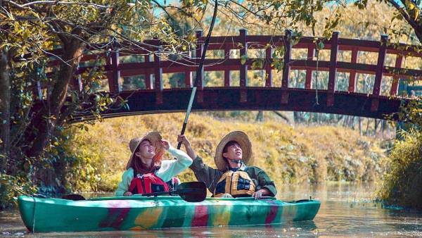 頭社村的村民們把早年灌溉農田的中央大排打造成國內唯一高山運河,讓遊客划著獨木舟遊「台版荷蘭羊角村」,還有其他DIY體驗活動,「我家門前有小河,後面有山坡。」用這首歌來形容頭社活盆地再適合不過了。