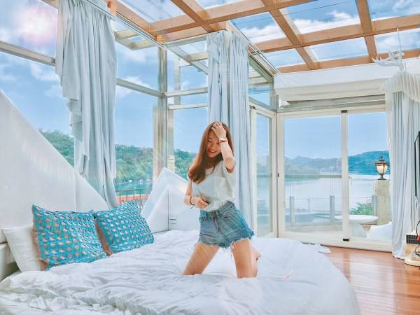 窗外也有小陽台設計,可以舒服安靜的享受,玻璃屋的風景相當優美,不管躺在床上或洗澡沐浴只要拉開窗簾就能從大片的玻璃窗遠眺日月潭湛藍的湖景,相當有渡假的氣氛。
