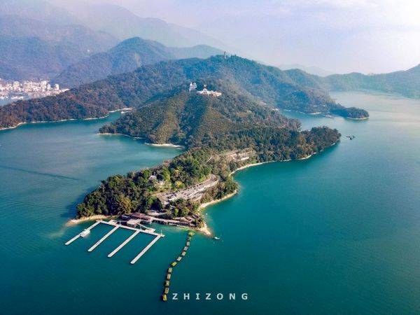 由上而下的角度是來到慈恩塔必拍的場景,塔頂的觀景台可以將日月潭360度的湖光山色、壯麗美景盡收眼底,是日月潭著名的地標之一,也是日月潭的至高點。