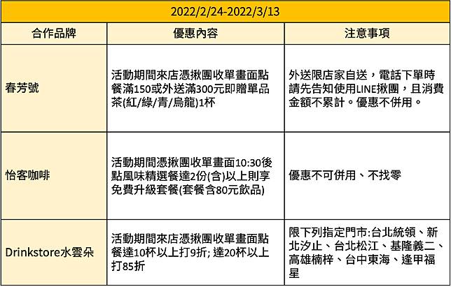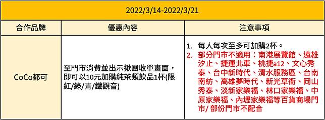 3月2日更新活動辦法:新增CoCo都可優惠不適用門市