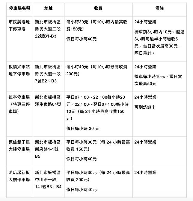 自行開車的新北耶誕城民眾,可以將愛車停在市民廣場停車場(每小時30元)、板橋火車站停車場(每小時40元)、特專三停車場(每小時平日20元、假日30元)