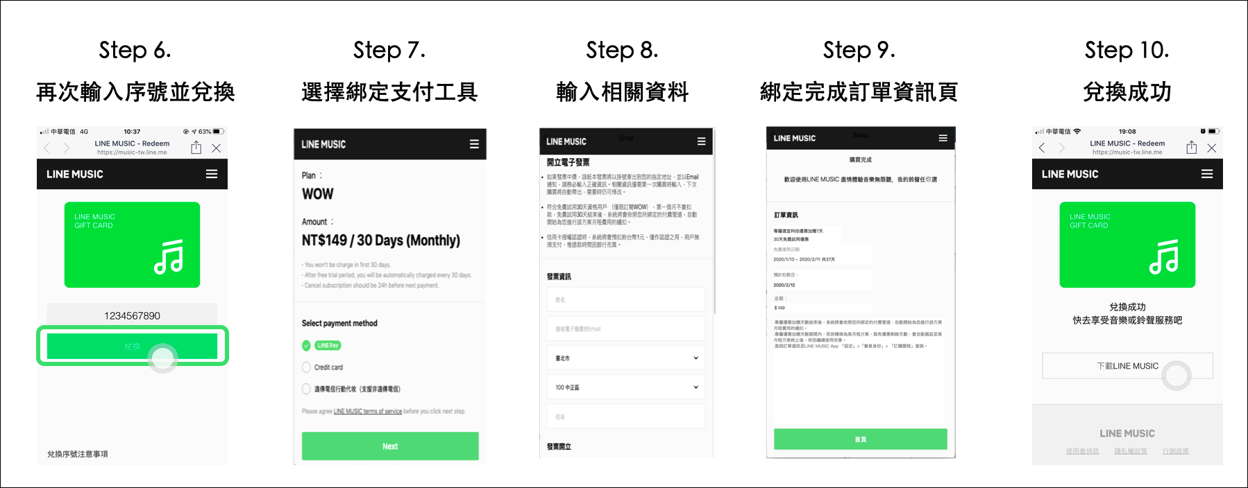6. 此為免費體驗序號,限LINE MUSIC免費會員使用,付費會員需於方案結束後,序號到期前方可進行兌換