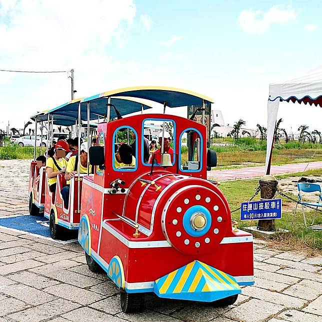 ▼遊園小火車更能帶領遊客親自體驗鹽田的生態,收獲良多。