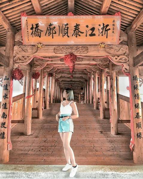 位於武昌宮(看地圖)內的泰順廊橋,是一座純木造的廊橋,有著濃濃的中國風情,像極了古裝劇場景,樑上綁著喜氣的紅彩球,其實廊橋正中心藏著一座小小的月老廟,因此有「愛的橋梁」寓意,想要覓得良緣的朋友,不妨順道來拜訪月老祈求好姻緣。