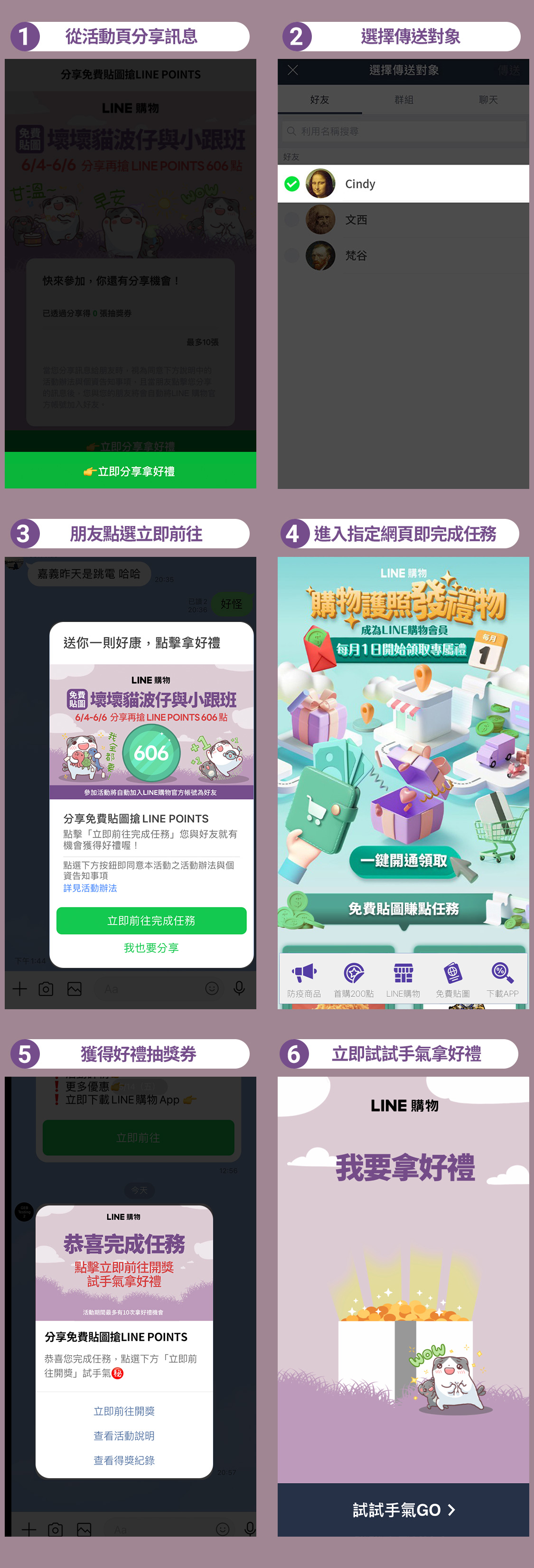 3. 分享者須從活動頁分享訊息並選擇好友傳送,若將他人分享的網址轉發給好友,將無法獲得好禮。