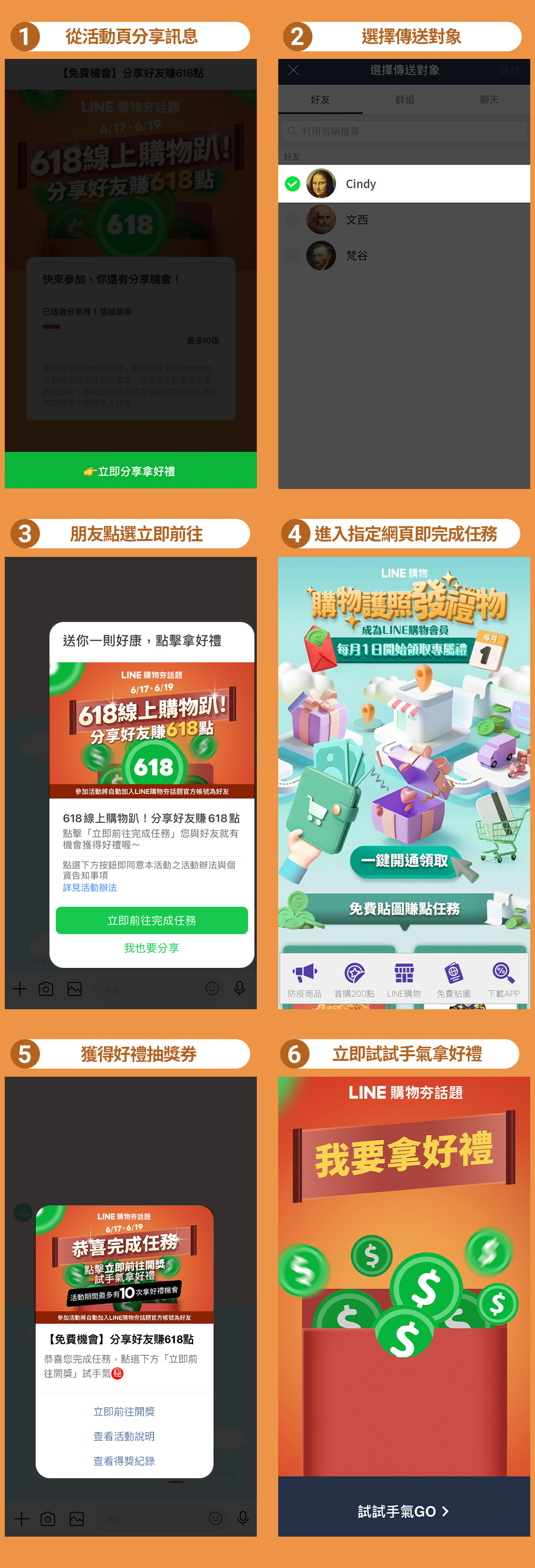 5. 分享給同1名好友,最高可獲得1次好禮,若要再獲得好禮請分享給其他好友。