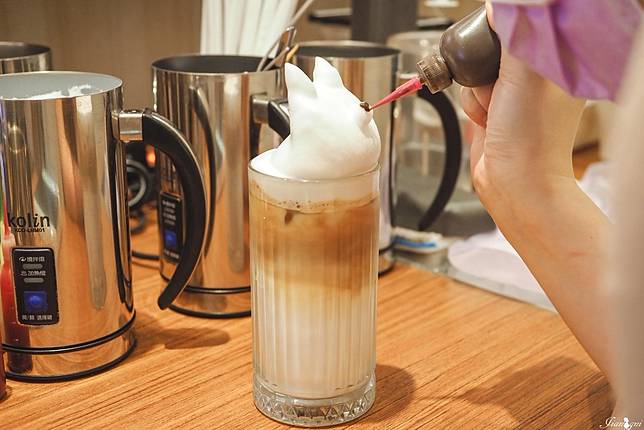 對於不喝咖啡因的人也可以選擇牛奶飲品,一樣可以製作立體拉花。這杯是隔壁小朋友的牛奶拉花,小朋友選了白熊,闆娘貼心幫小朋友製作了菜單上沒有的角落生物裡的白熊,算是隱藏版喔!不過這得要看闆娘『心情』製作~有時後會突如其來送上驚喜,讓客人受寵若驚呢!