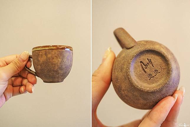 看似普通的杯子,這可是老闆精心挑選過-承襲陶作坊36年陶瓷工藝,以台灣在地材質『老岩泥』淬煉出世界第一個岩礦&陶土結合的咖啡杯。老闆選用與耶加雪菲最接近的咖啡口感來盛裝_5次燒的陶瓷杯,並搭配德國白瓷手沖,打破以往我對耶加雪菲『很酸』的印象!