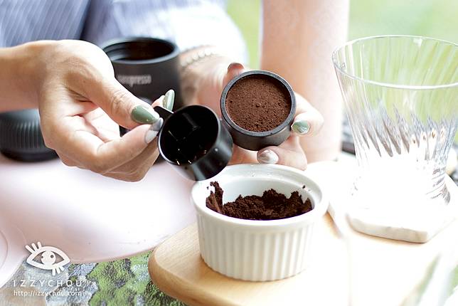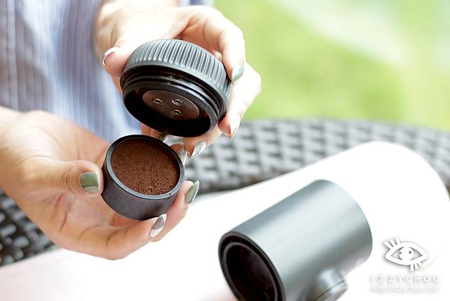 清洗的方式也很簡單,旋開咖啡粉填充那端的蓋子,拿出粉杯後輕輕地在邊緣敲幾下---