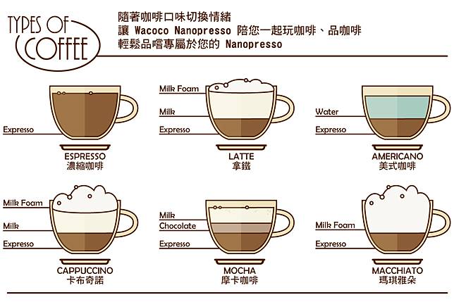 除了直接喝義式濃縮,還可以延伸出各種不同的義式咖啡---