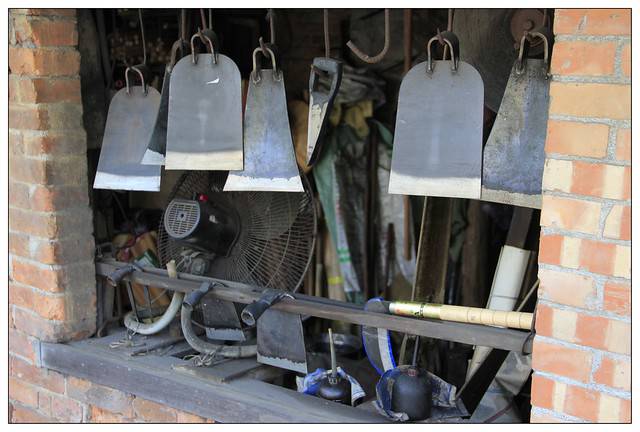 打鐵舖外掛著琳瑯滿目的刀具及農具