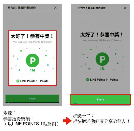 1. 本活動由LINE Corporation(下稱主辦單位)舉辦,主辦單位將蒐集活動參加者的 LINE 帳號之內部識別碼、活動參加時間等得以直接或間接識別個人的資料,以用於兌換通知、獎勵發送。利用地區限於活動舉辦地區(設定台灣門號始可參加),利用期間至活動開始後至活動舉辦期間結束後六個月內,利用對象與方式:利用LINE帳號之內部識別碼發送LINE POINTS。若活動參加者不願提供相關之個人資料予主辦單位,或者請求停止蒐集、處理或利用,或者請求刪除所蒐集之個資,將無法參加本活動及收到獎項。