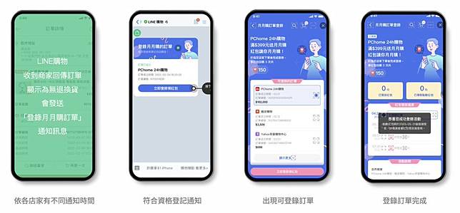 3. 「登錄月月購訂單」通知將於收到「LINE購物訂單通知」30天後陸續發送。